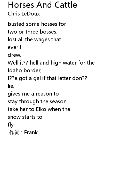 | Song | Horses And Cattle |