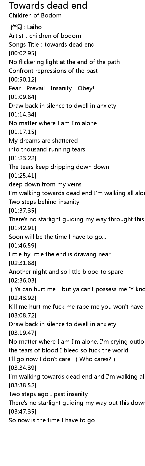 | [00:01.58] | Songs Title:towards dead end |