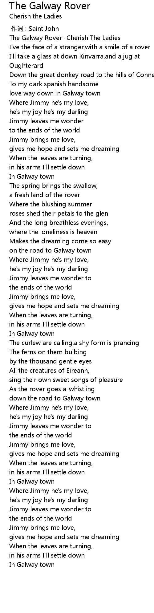 | [00:00.00] | The Galway Rover Cherish The Ladies |