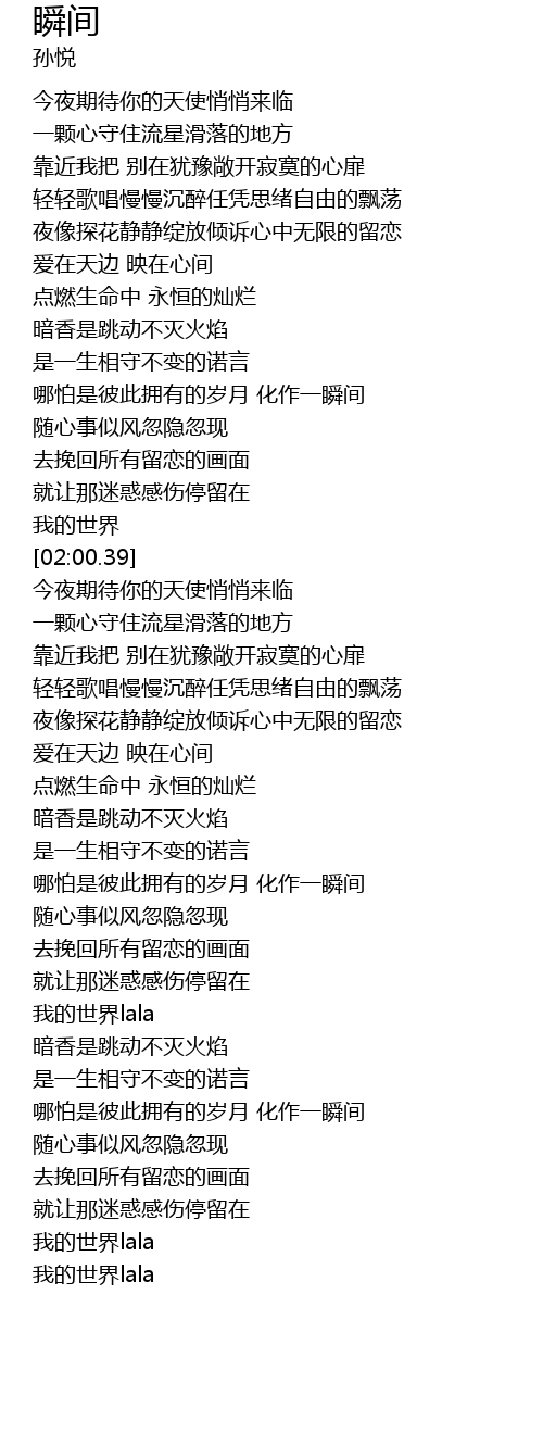 | [01:39.08] | nǎ pà shì bǐ cǐ yōng yǒu de suì yuè huà zuò yī shùn jiān |