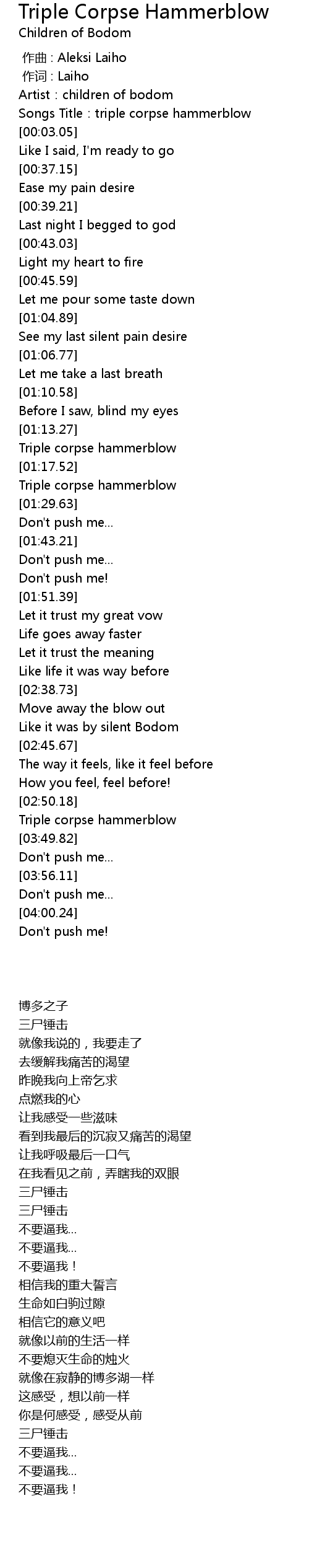 | [00:00.00] | zuo qu : Aleksi Laiho |