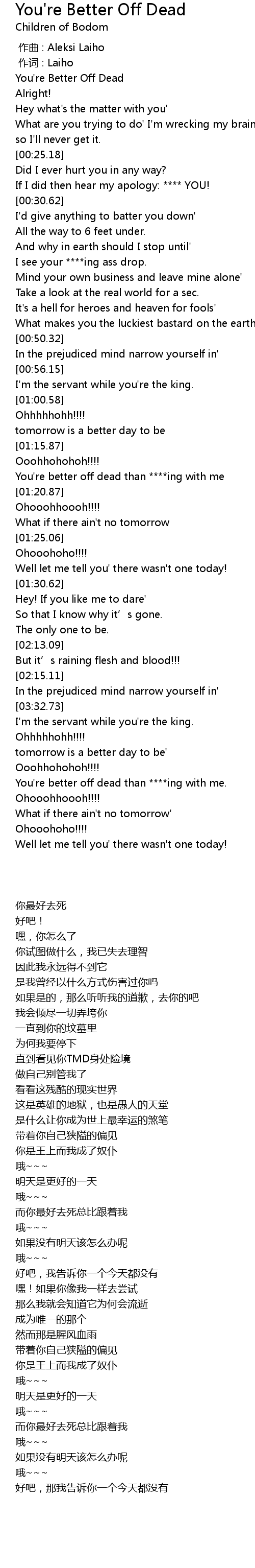 | [00:00.00] | zuo qu : Aleksi Laiho |