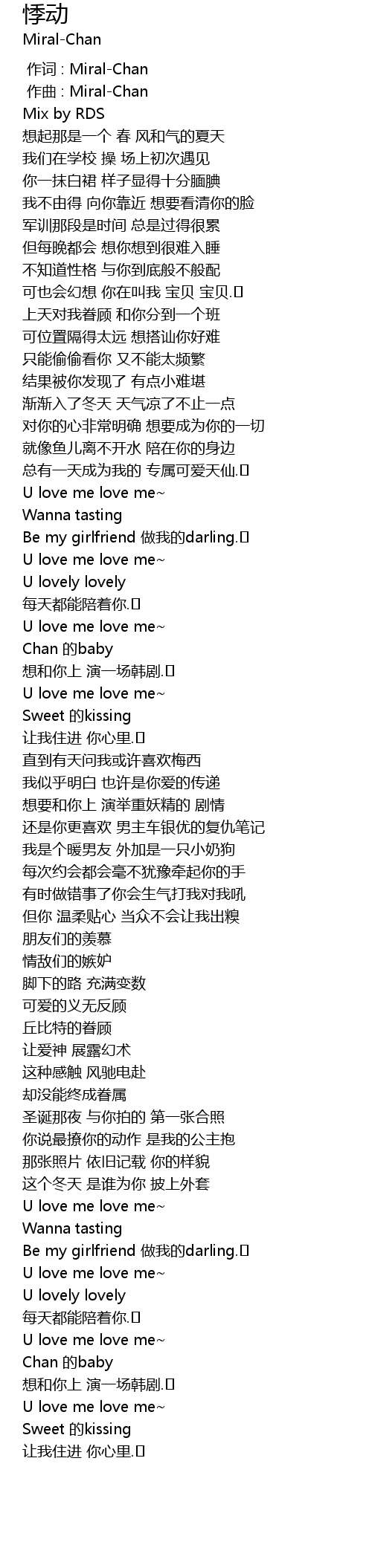| [01:59.858] | Be my girlfriend 做我的darling.♡ |