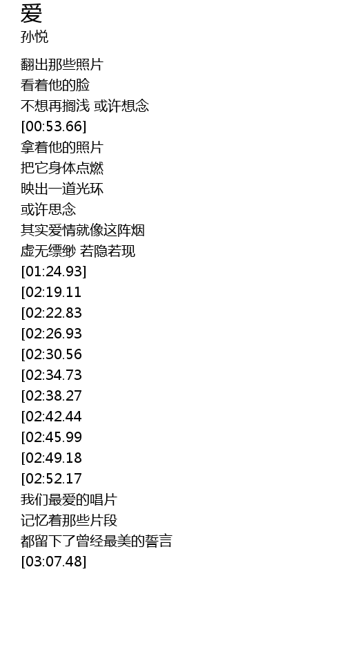 | [03:36.48][02:42.44][01:52.13] | 爱 也会眷恋 |