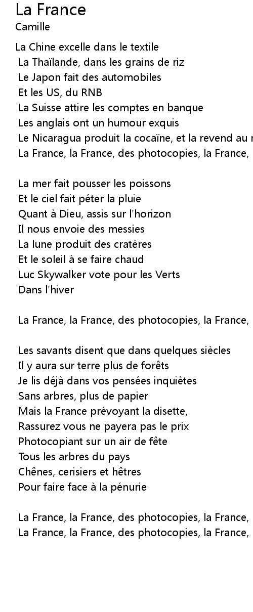 | La France, la France, des photocopies, la France, la France, des photocopies |