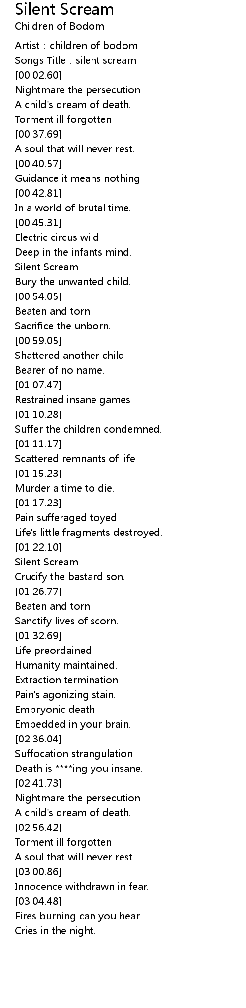 | [00:00.42] | Artist: children of bodom |