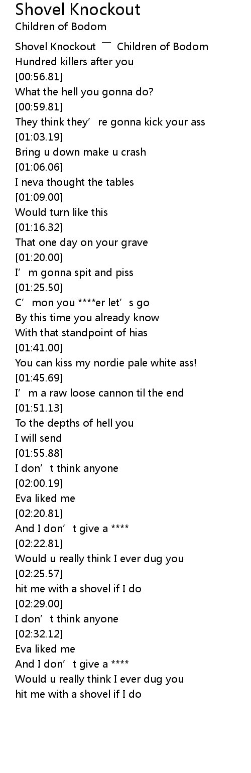 | [00:00.89] | Shovel Knockout ―― Children of Bodom |