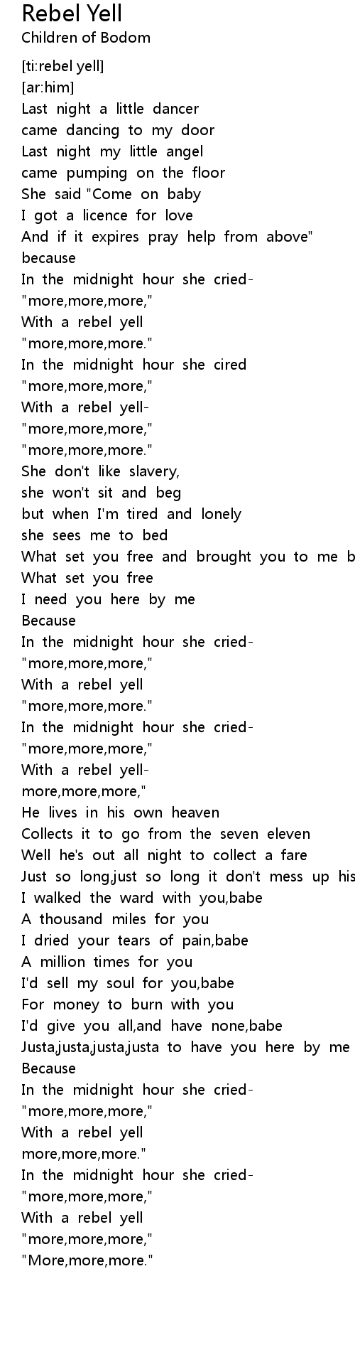 In the midnight hour she cried- |