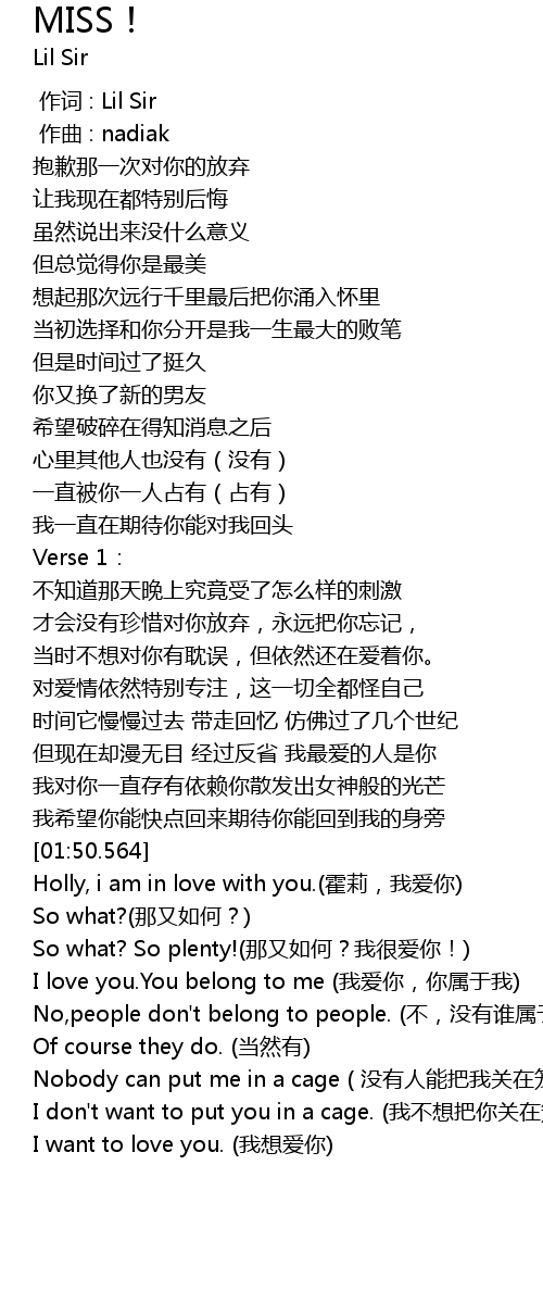 | [00:00.000] | 作词 : Lil Sir |