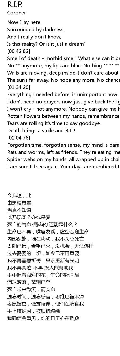 | [02:02.01] | Death brings a smile and R.I.P. |