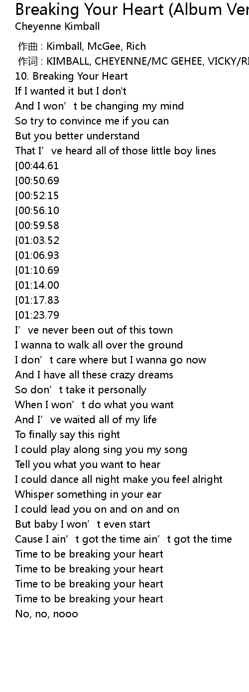 | [02:29.09][01:17.83] | Time to be breaking your heart |