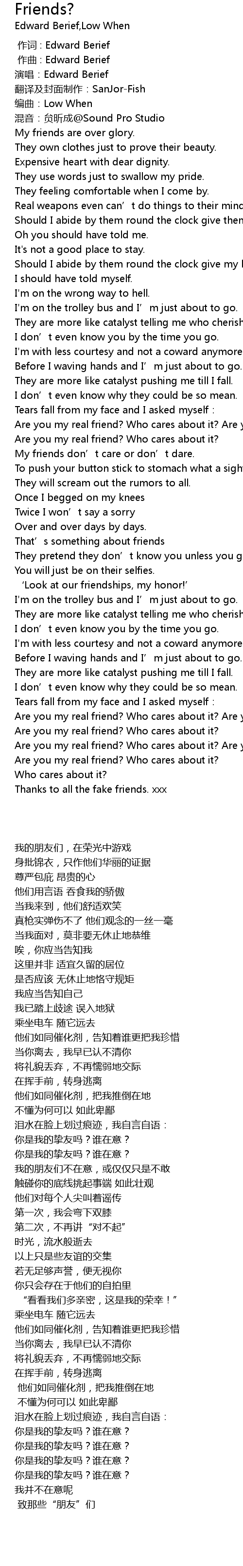 | [02:26.32] | Are you my real friend? Who cares about it? Are you my real friends? |