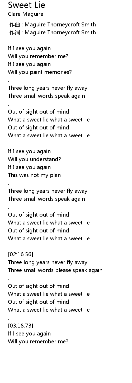 | [03:12.29] | What a sweet lie what a sweet lie |