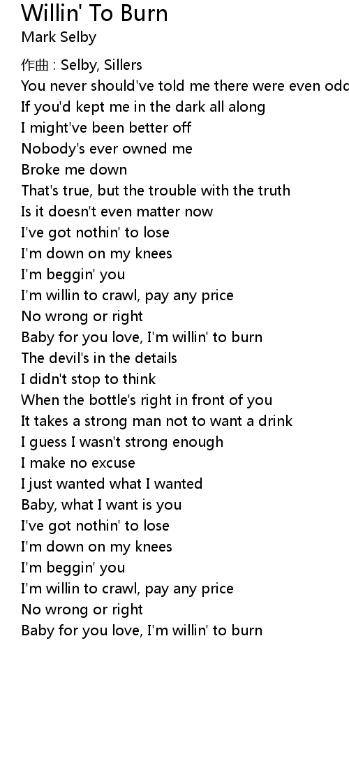 | Baby for you love, I' m willin' to burn | |
