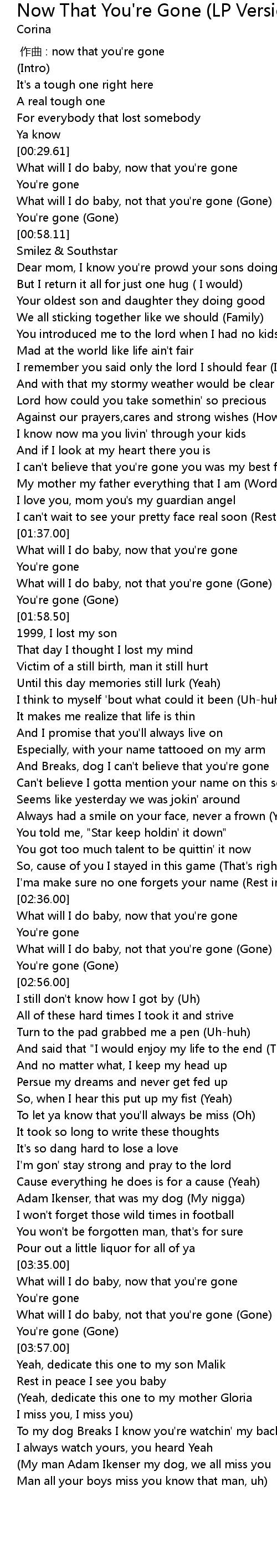 | [02:46.35] | What will I do baby, not that you're gone (Gone) |