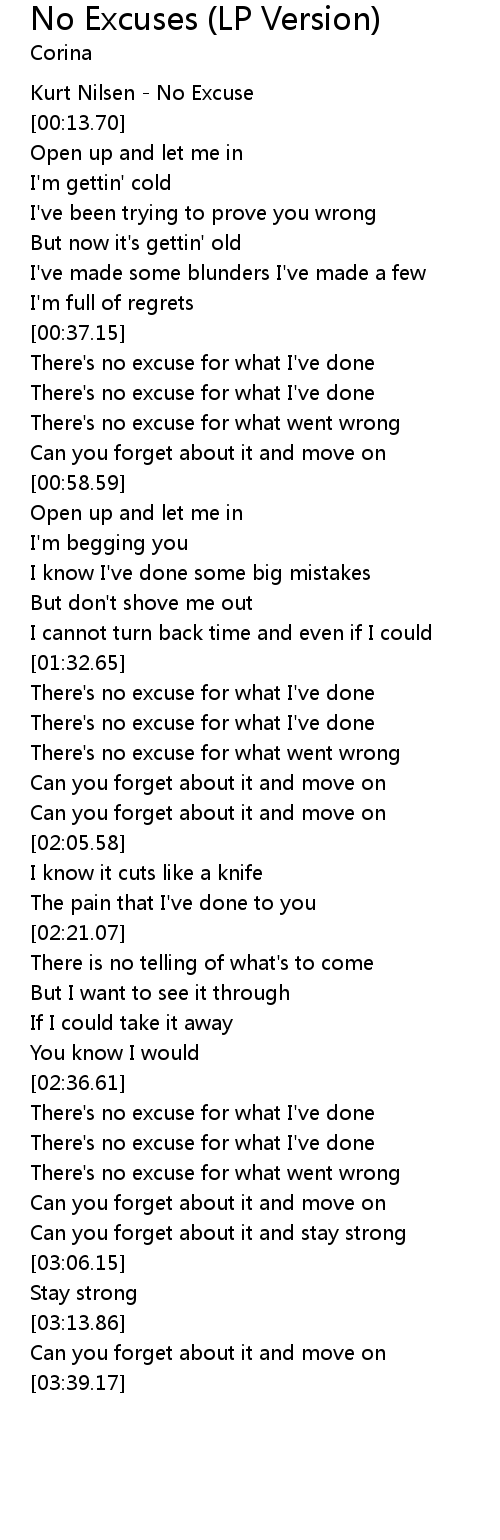 | [00:41.54] | There's no excuse for what I've done |