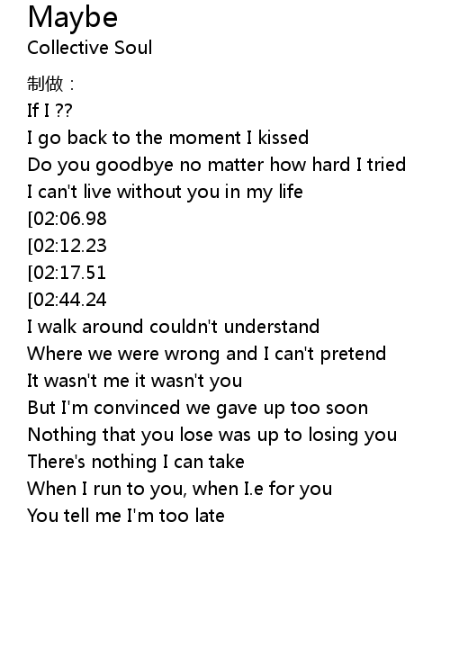 | [02:01.39] | You tell me I' m too late |