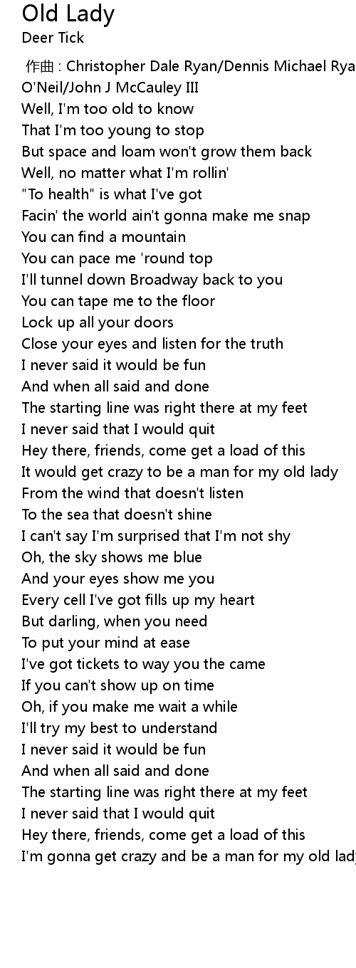 | [02:45.115] | I'm gonna get crazy and be a man for my old lady |