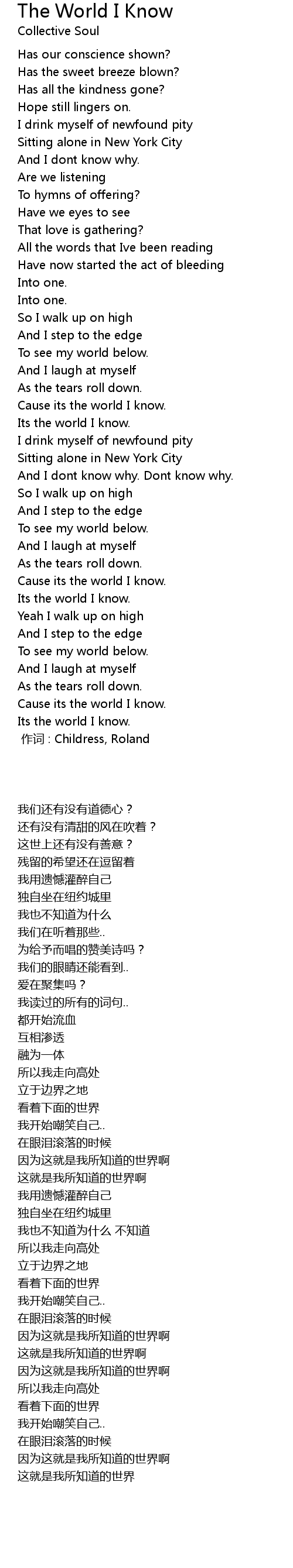 | Song | The World I Know |
