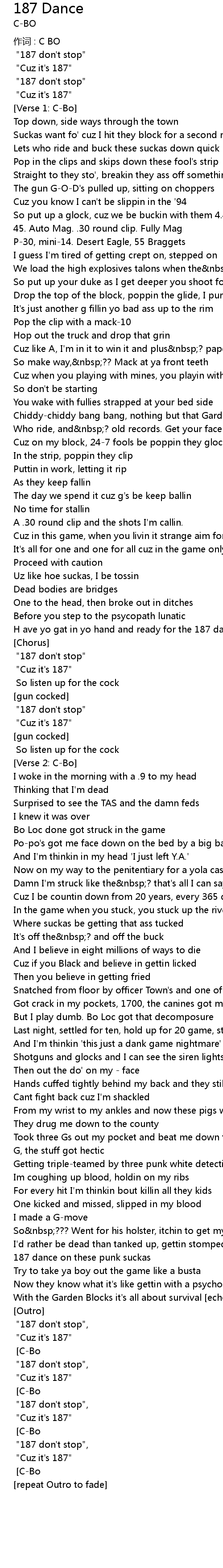 | [Dr. Dre] "187 don't stop", | |