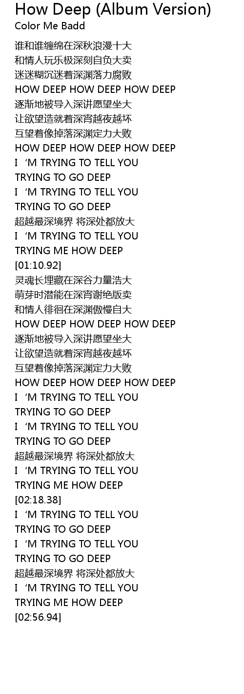 | [01:34.75] | HOW DEEP HOW DEEP HOW DEEP |