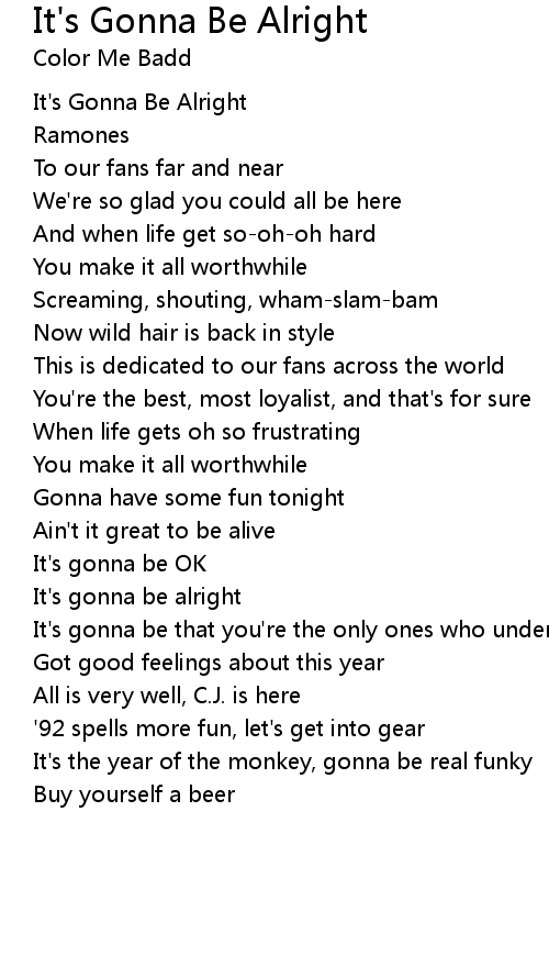 It's gonna be alright |