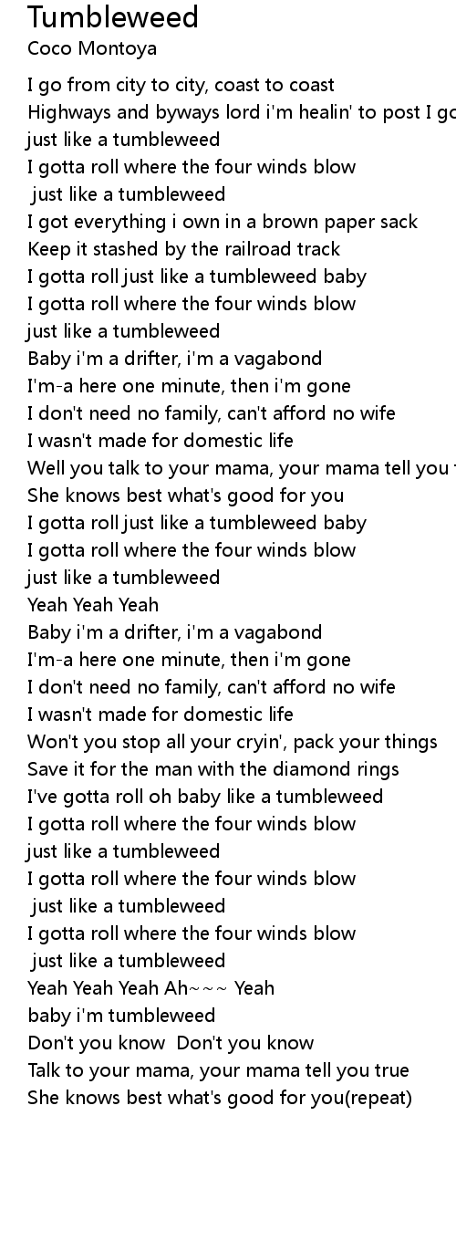 I gotta roll just like a tumbleweed baby |