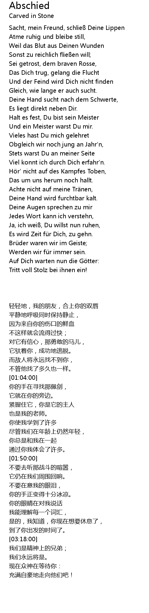| Es wird Zeit fü r Dich, zu gehn. | |