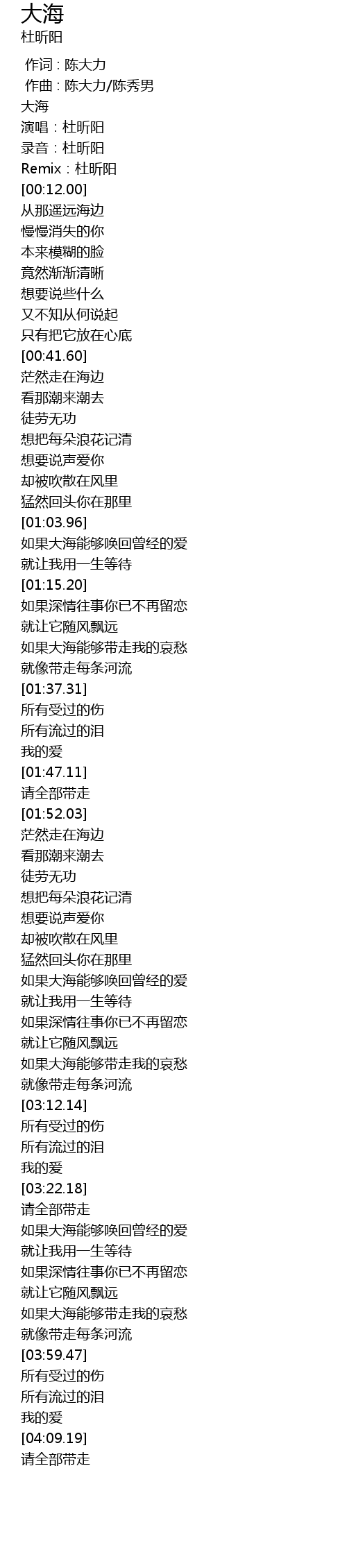| [03:01.61] | 如果大海能够带走我的哀愁 |