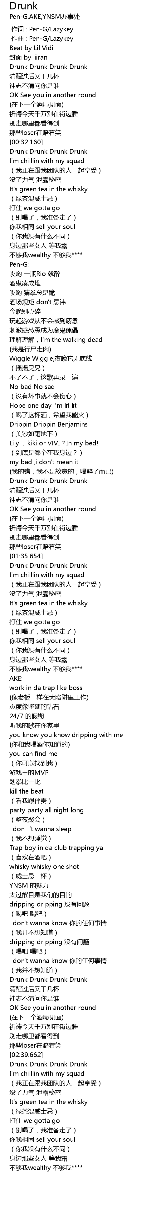 | [01:20.158] | Drunk Drunk Drunk Drunk |