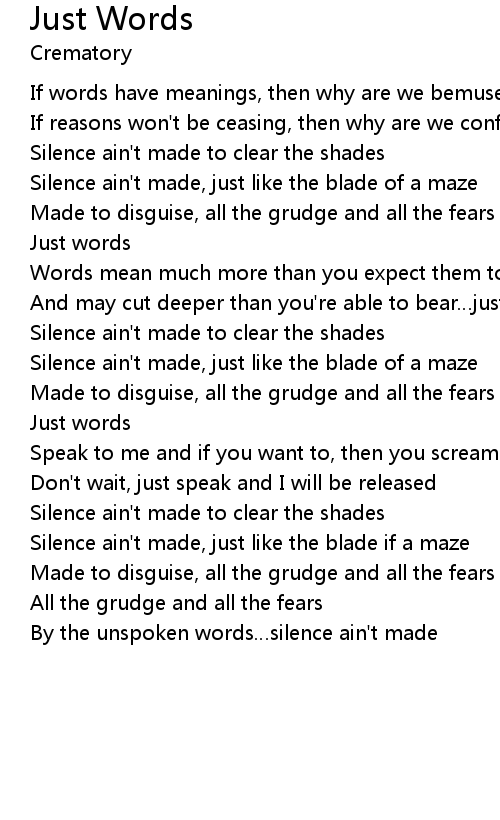 | And may cut deeper than you're able to bear…just words | |