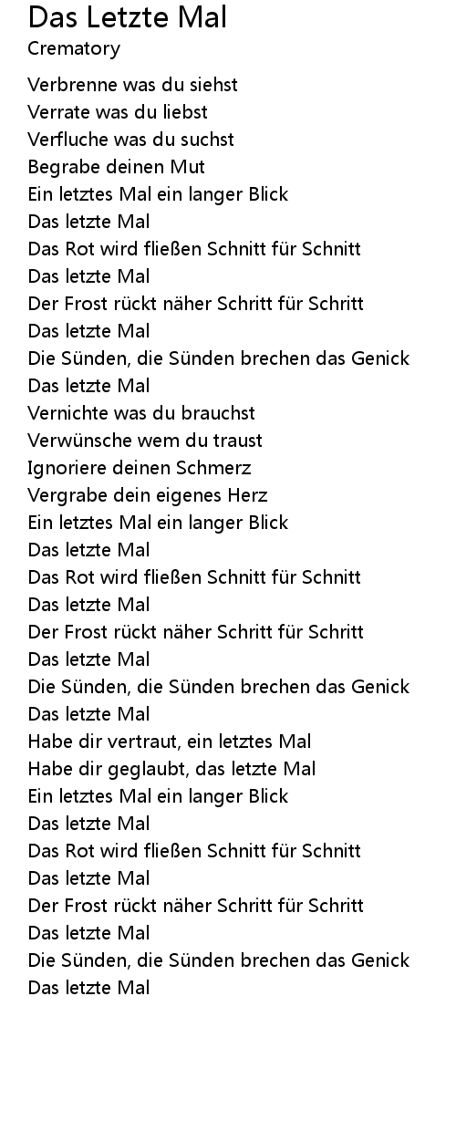 | Das letzte Mal |
