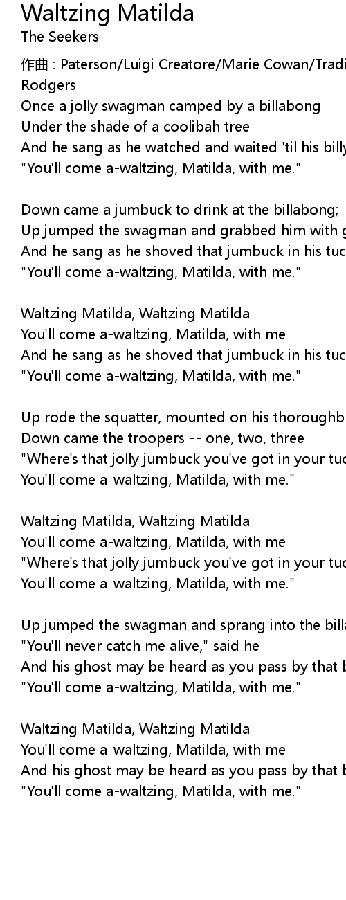 | "You'll come a-waltzing, Matilda, with me." | |