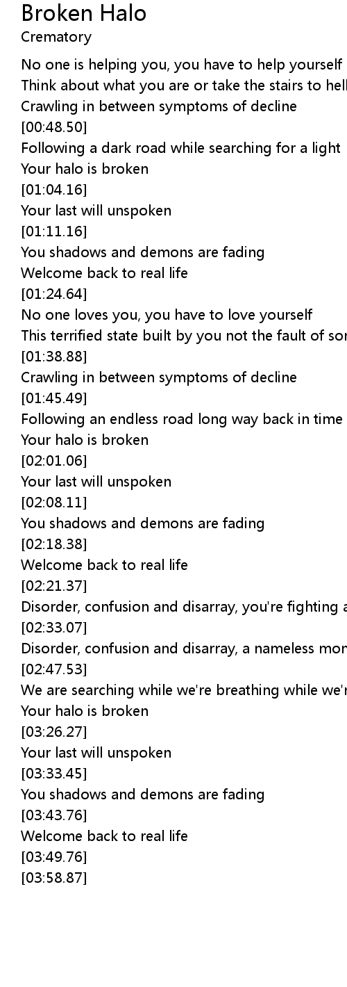 | [00:36.27] | Think about what you are or take the stairs to hell |