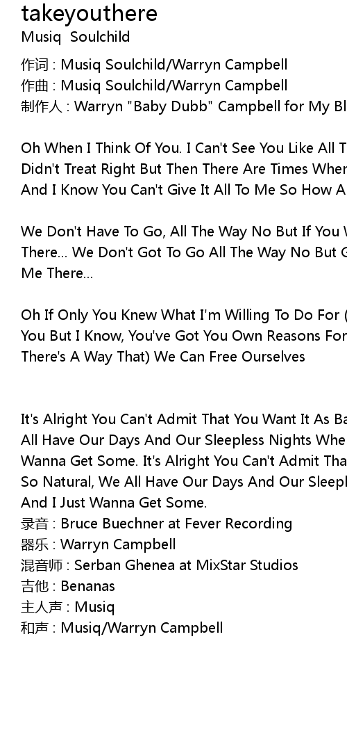| zuo qu : Musiq Soulchild Warryn Campbell | |