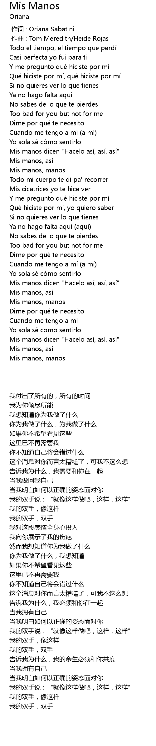 | [00:00.000] | 作词 : Oriana Sabatini |