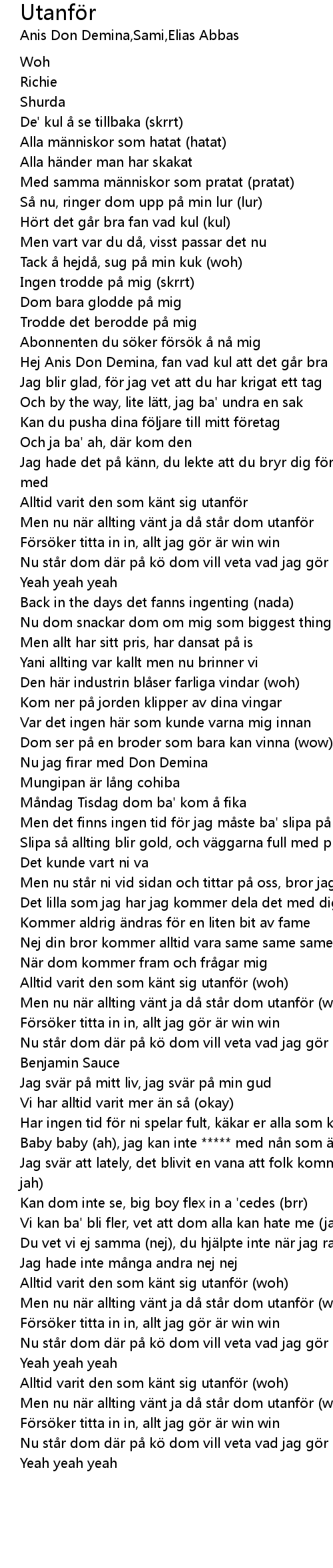 | [01:41.56] | Alltid varit den som känt sig utanför (woh) |