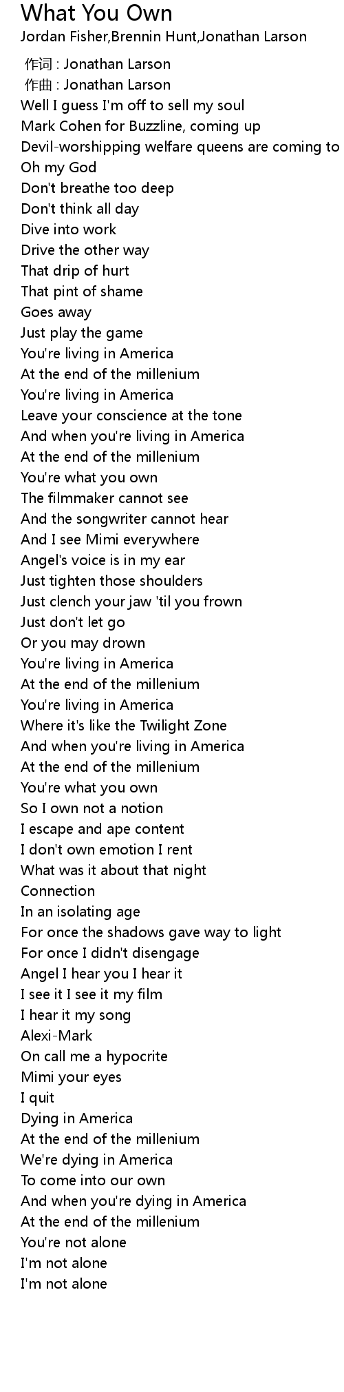 | [00:00.000] | zuò cí : Jonathan Larson |