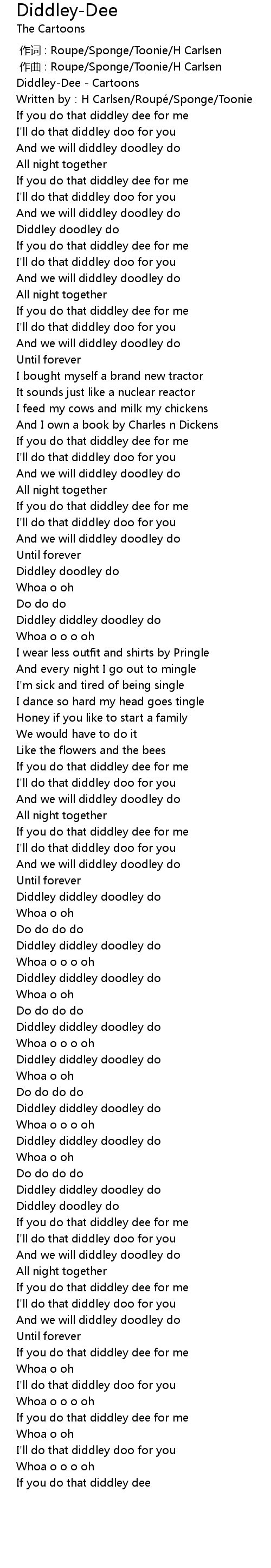 | [00:00.10] | Diddley-Dee - Cartoons |