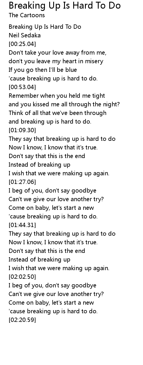 'cause breaking up is hard to do. |