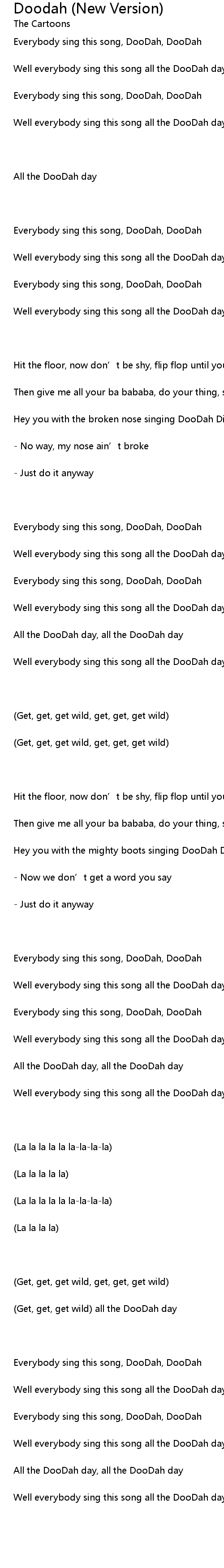 | Well everybody sing this song all the DooDah day (get wild) | |