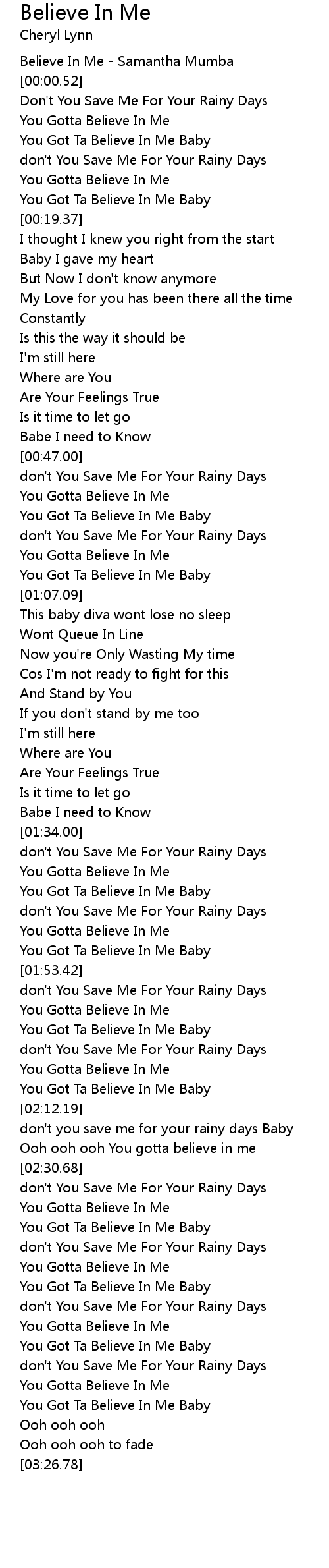 [02:23.56] Ooh ooh ooh You gotta believe in me