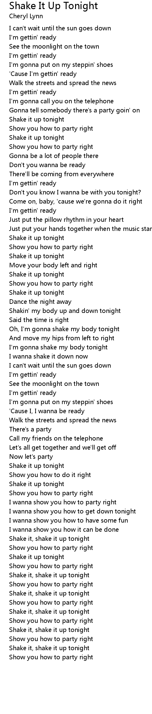 Shake it, shake it up tonight |