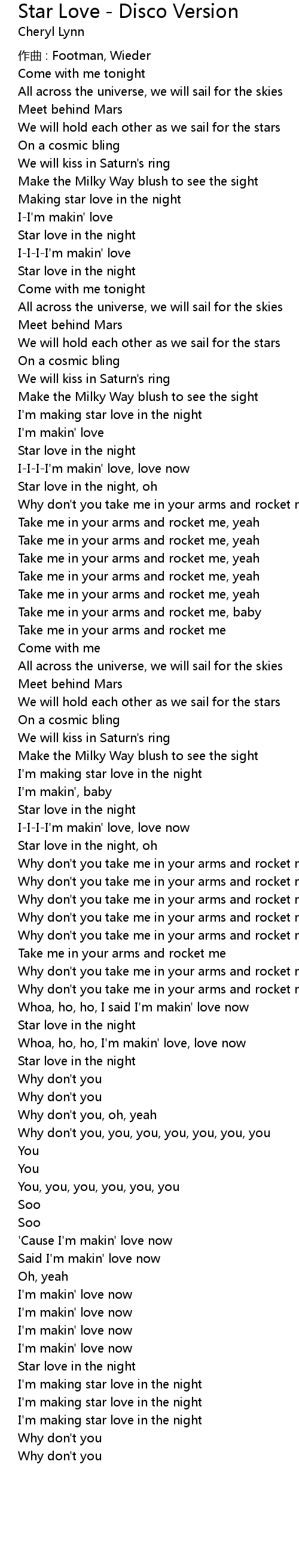 | Why don' t you take me in your arms and rocket me | |