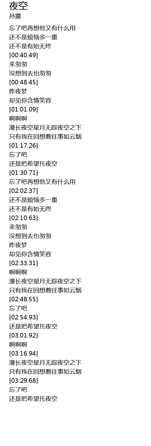 | [02:37.94] | 漫长夜空星月无踪夜空之下 |