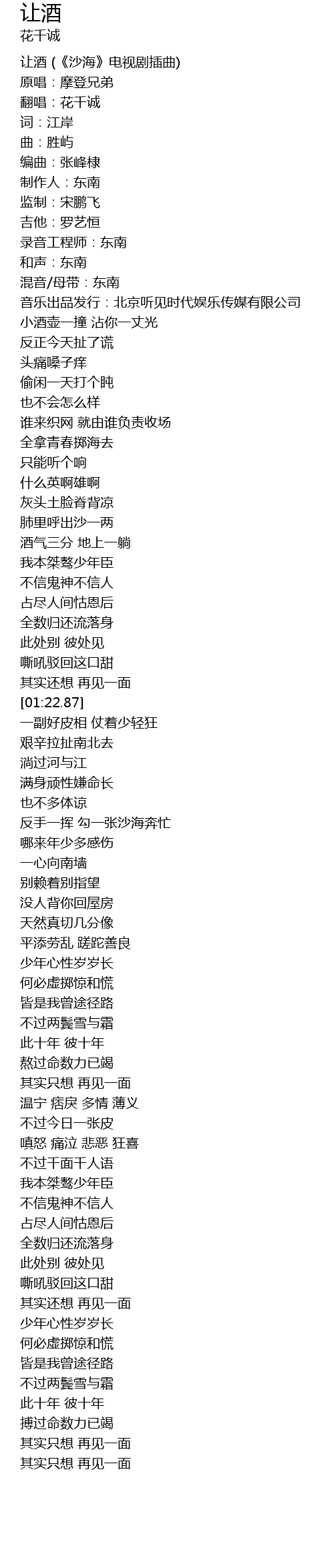 | [00:00.30] | 让酒 (《沙海》电视剧插曲) |