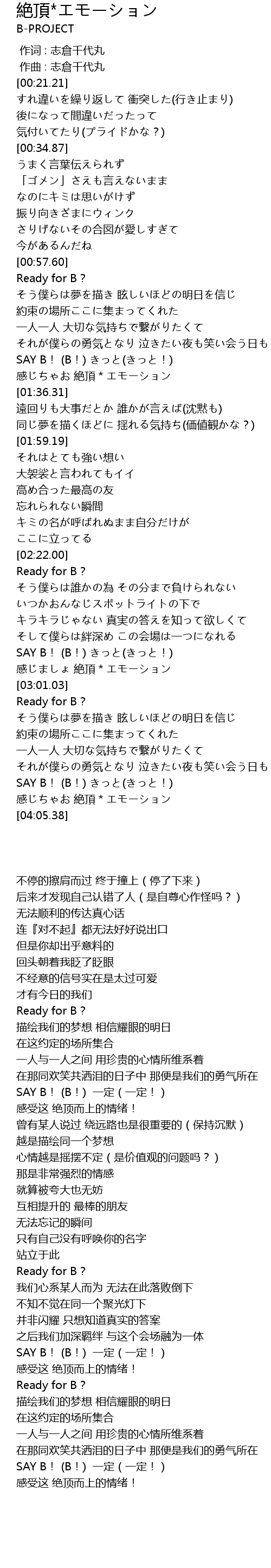 | [03:54.93] | SAY B! (B!) きっと(きっと!) |