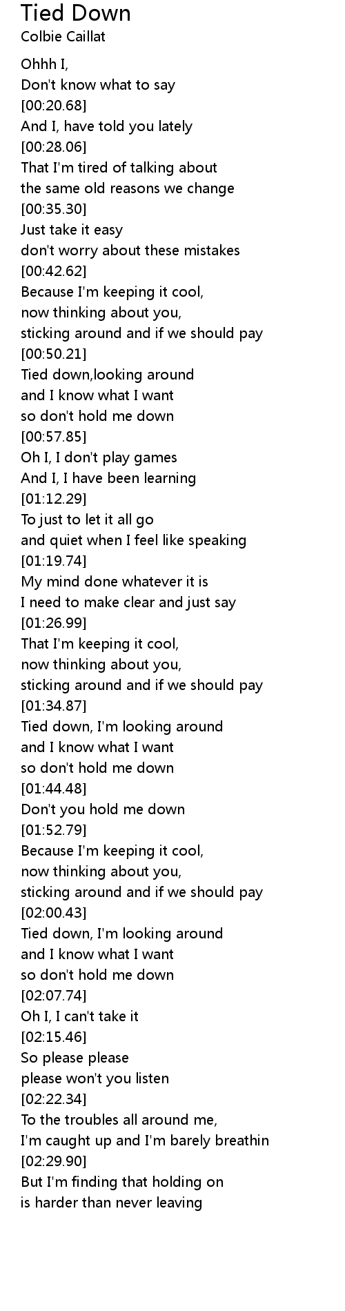 Tied down, I'm looking around |