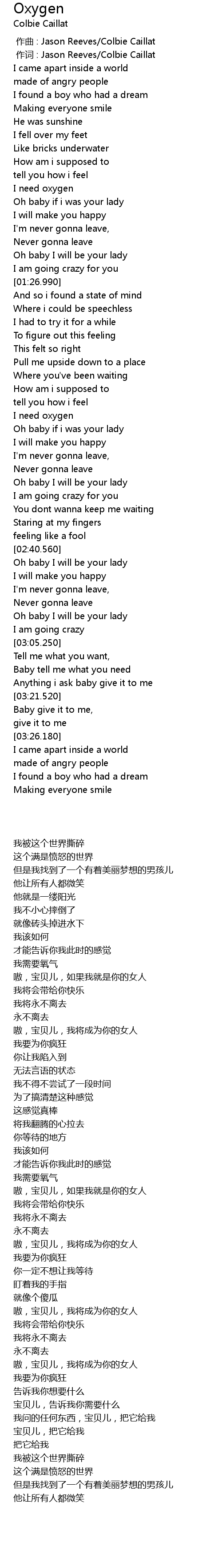 | [00:01.00] | zuò cí : Jason Reeves Colbie Caillat |