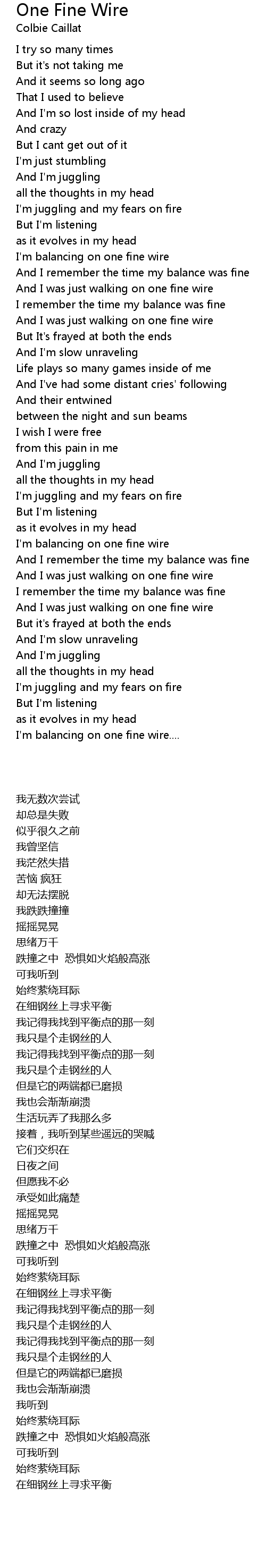 | [00:44.820] | I' m balancing on one fine wire |
